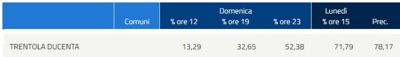 Ecco i dati aggiornati del Ministero dell'Interno, delle elezioni comunali 2020. Di seguito, il dato sull'affluenza finale al voto a TRENTOLA DUCENTA. Ricordiamo che lo spoglio comincerà domani mattina dalle ore 9:00.