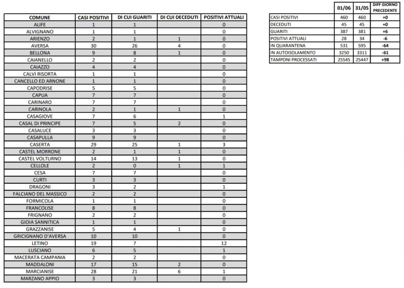 Questi i dati pubblicati dall'ASL Caserta