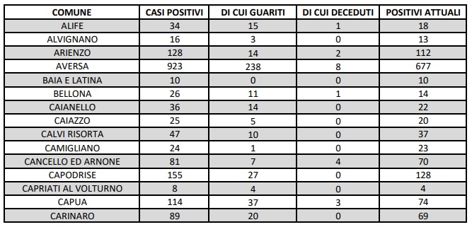 Questo quanto comunicato dall'ASL Caserta
