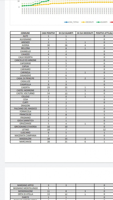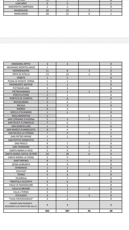 03/6. Coronavirus. Dati Asl Comune per Comune Prov. Ce. 2 positivi in piu' nelle ultime ore