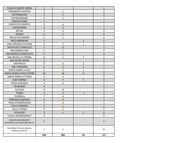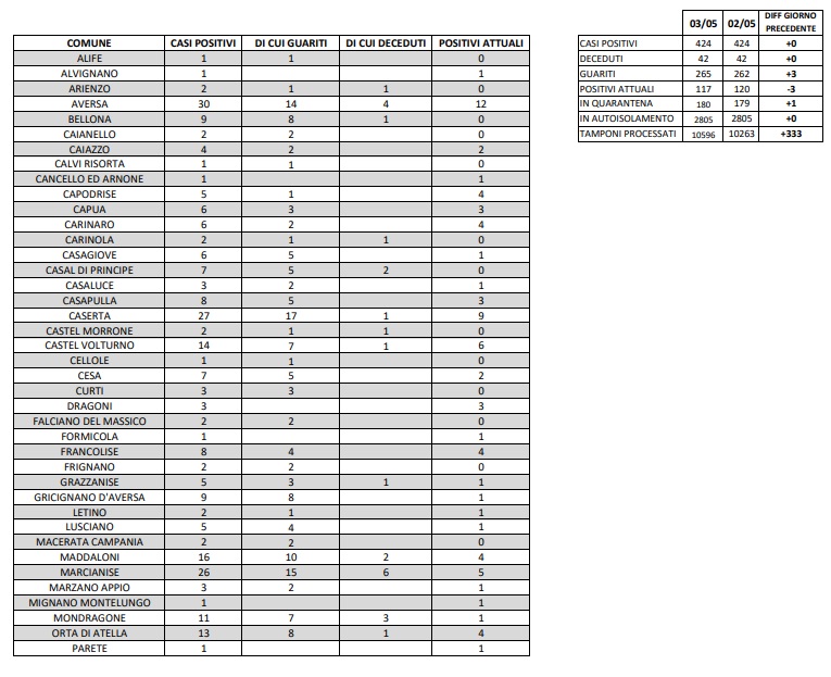04/05 Ore 13. Agg. Coronavirus Prov. CE. Dati ASL Comune per Comune