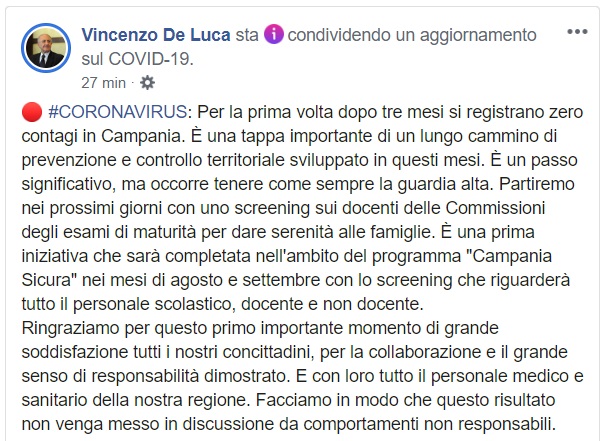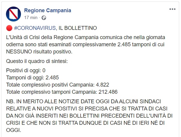 Questo quanto pubblicato da Regione Campania