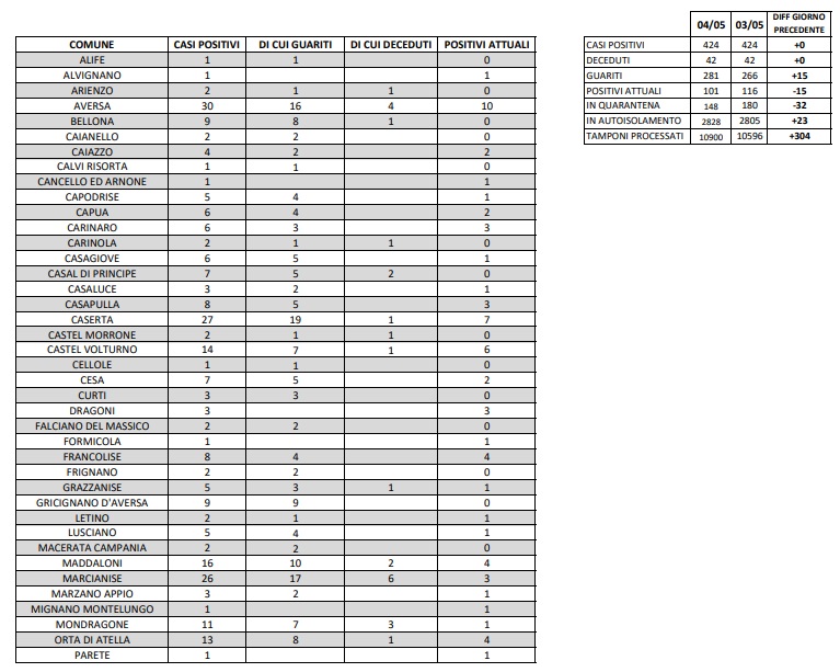 Questo quanto comunicato dall'ASL Caserta