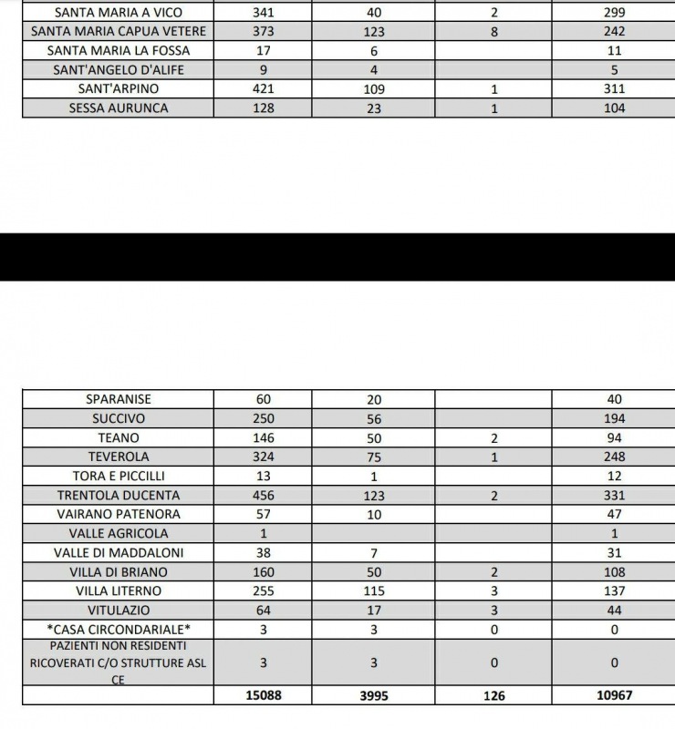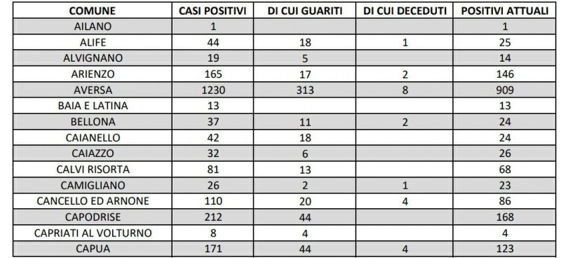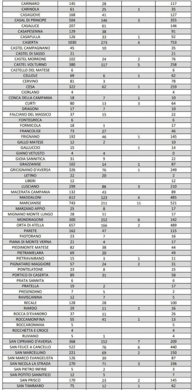 07/11. Coronavirus in Prov. di Caserta. Sono 10.967 i positivi attuali. I dati Comune per Comune