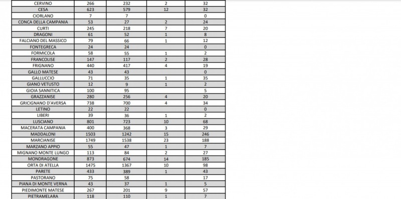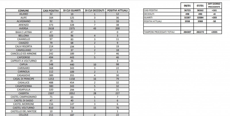 09/01. Coronavirus in Prov. di Caserta. A Maddaloni il più alto numero di positivi. I dati Comune per Comune