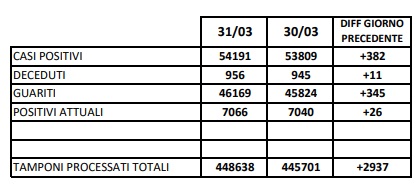 1/4. Covid Prov. Ce. 382 NUOVI POSITIVI e 11 DECEDUTI