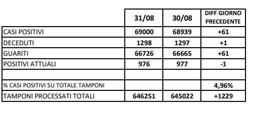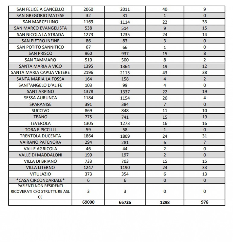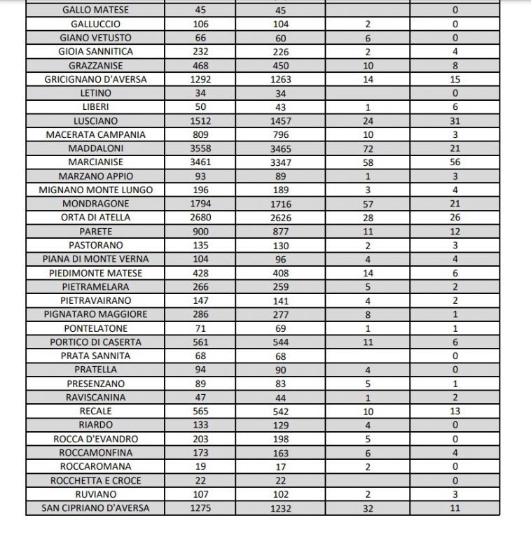 1/9. Registrati 61 nuovi casi Covid nella Prov. di Ce. Dati Comune per Comune