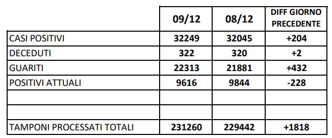 10/12. Agg. COVID Prov. Ce. Salgono ancora i guariti: 432. 204 nuovi positivi e 2 deceduti. Dati ASL Comune per Comune
