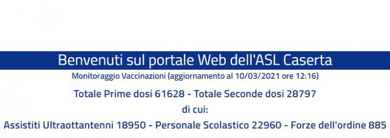 Questo il report dell'ASL Caserta in merito ai dati delle vaccinazioni anti-covid al 10 marzo. Si può vedere il totale delle somministrazioni, a quante persone è stata già somministrata la seconda dose, il numero di dosi somministrate a Ultraottantenni, personale scolastico e forze dell'ordine.