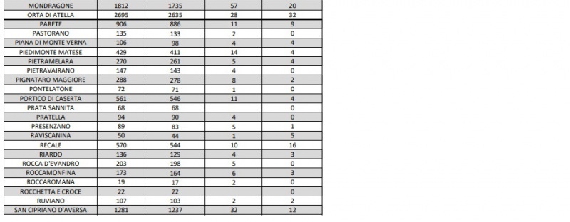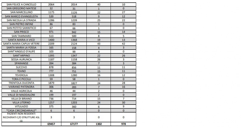 Questi i dati dell'Asl di Caserta: