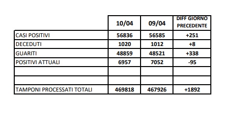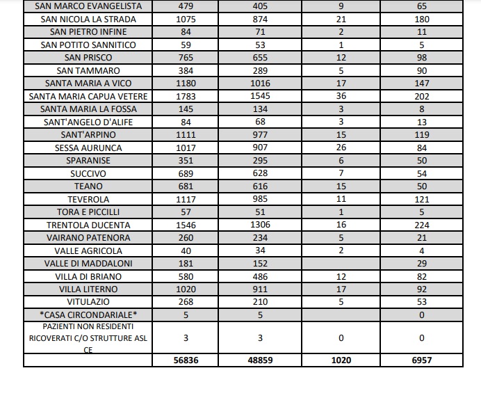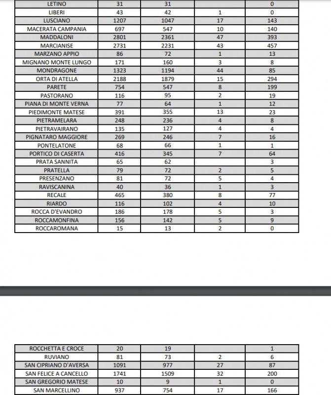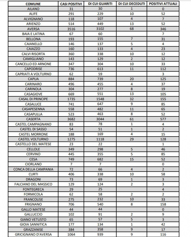 11/4. In Prov. di Ce registrati 8 decessi e 251 nuovi casi Covid. Dati Comune per Comune