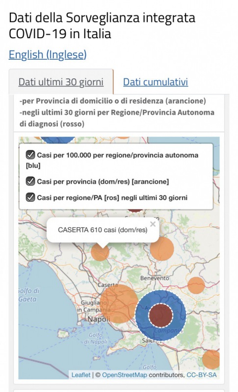 L'Istituto Superiore di Sanità riporta 610 casi positivi tra residente e domiciliati in Provincia di Caserta