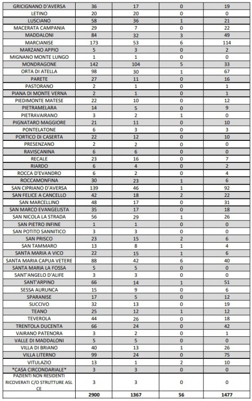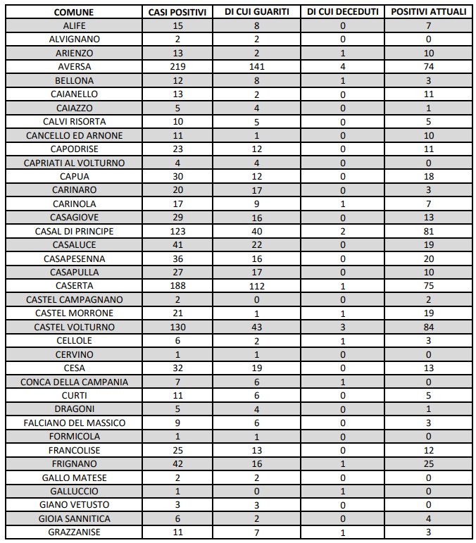 Questo quanto comunicato dall'ASL Caserta