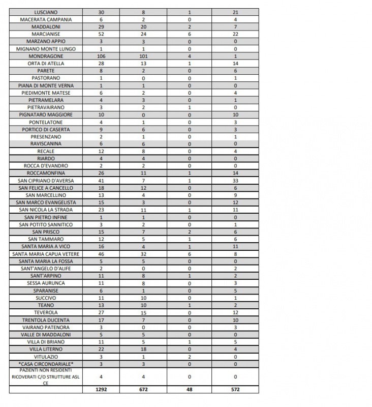 Questa la nota dell'ASL Caserta: