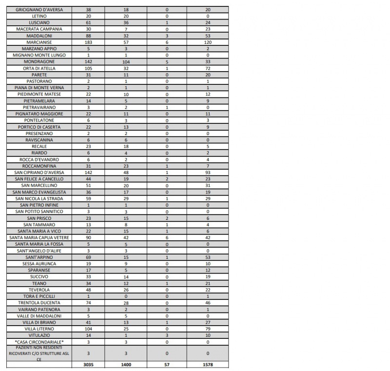 Questa la nota dell'ASL Caserta: