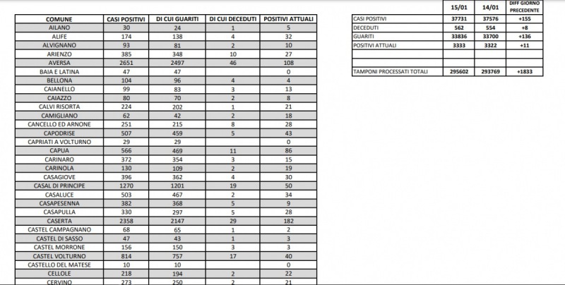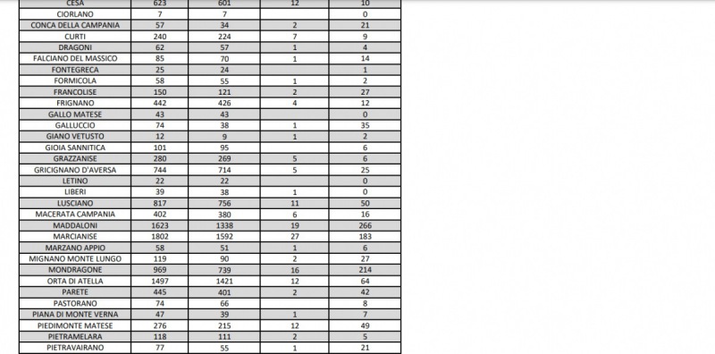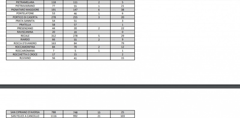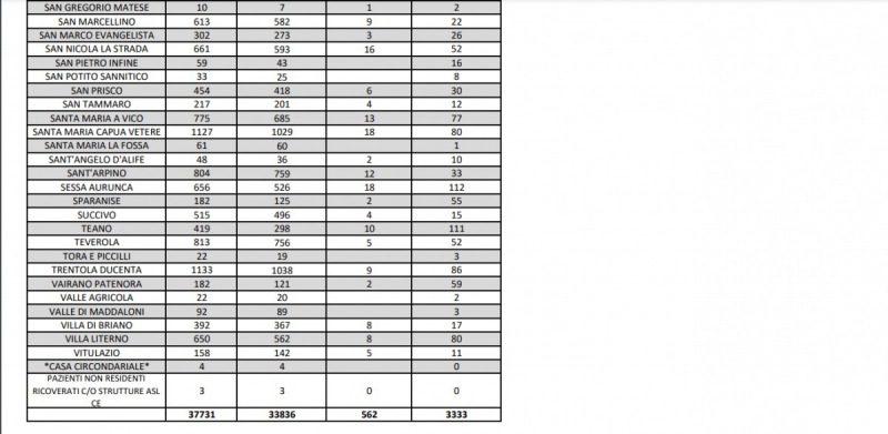 Questi i dati dell'Asl di Caserta: