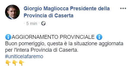 Questo quanto pubblicato dal Pres. della Prov. di CE Giorgio Magliocca
