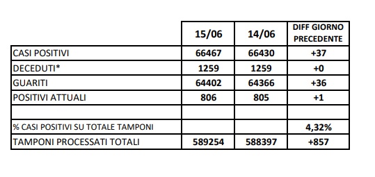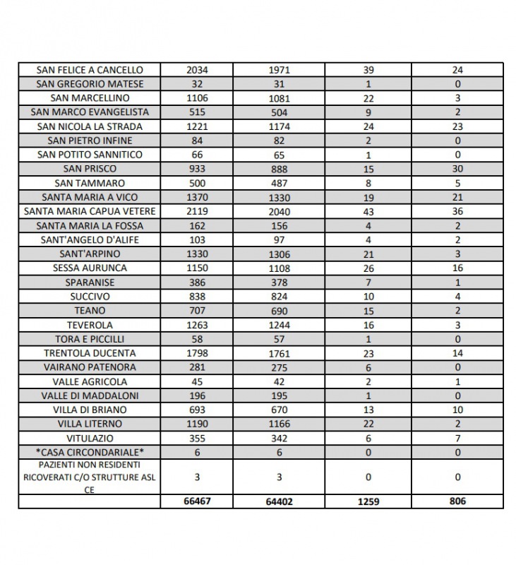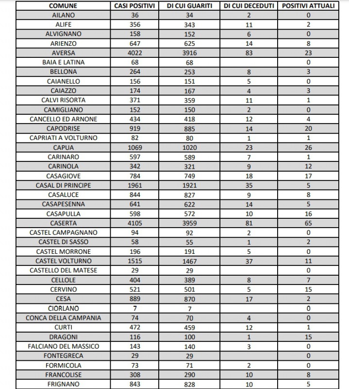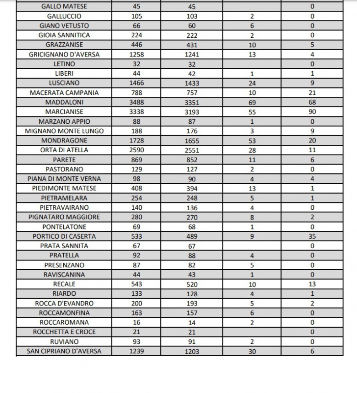16/6. Registrati 37 nuovi casi Covid nella Prov. di Ce. Dati Comune per Comune