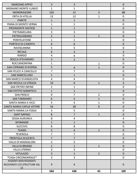 Questo quanto pubblicato dall'ASL Caserta