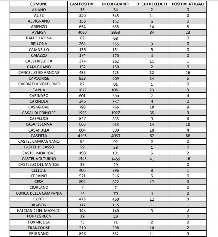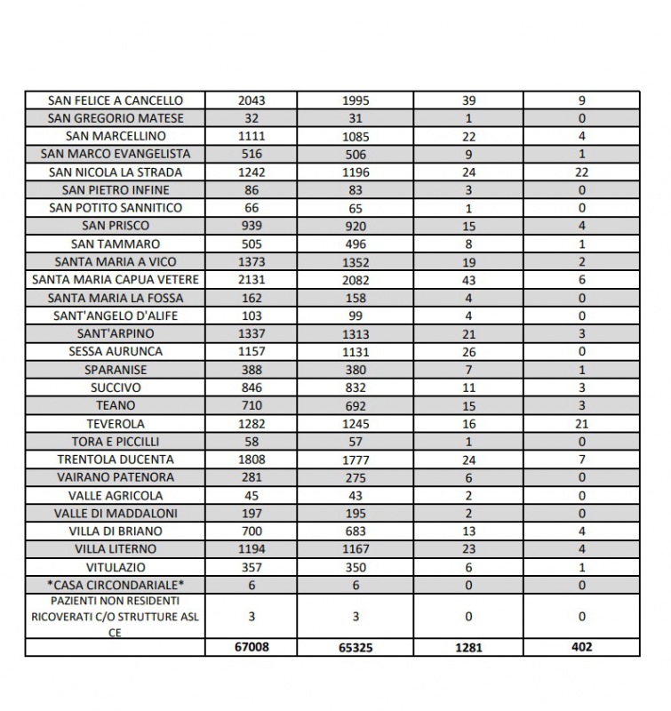 Questa la nota dell'ASL Caserta: