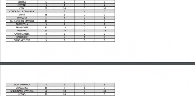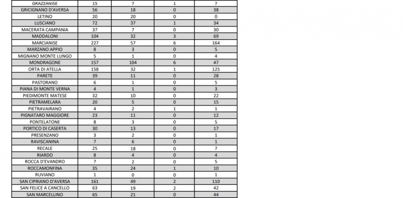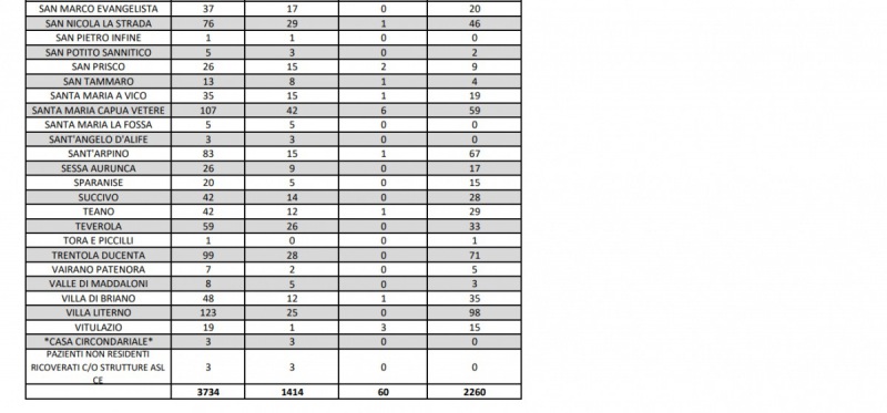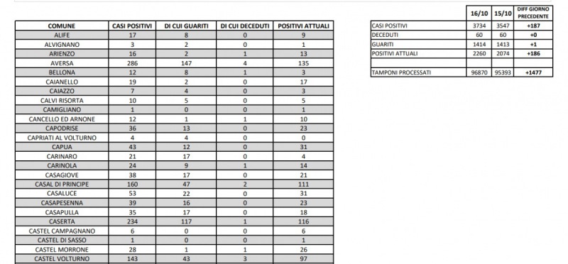 17/10. 187 NUOVI POSITIVI, 2260 i POSITIVI ATTUALI. Dati ASL CE Comune per Comune