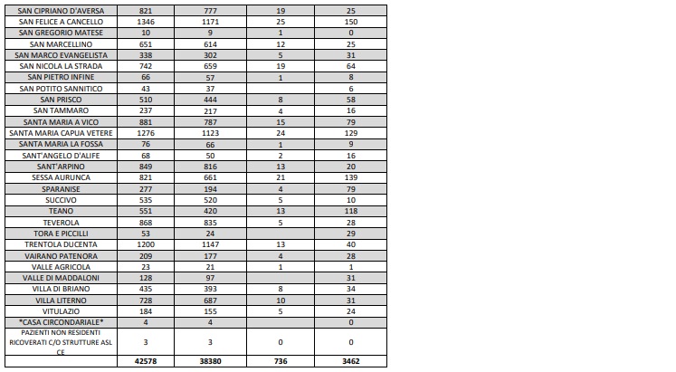 Questi i dati dell'Asl di Caserta