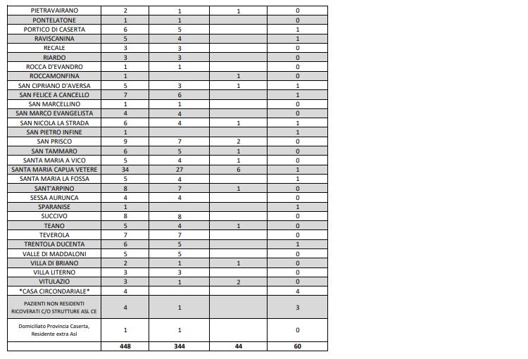Questo quanto comunicato dall'ASL Caserta sui contagi da Coronavirus Comune per Comune