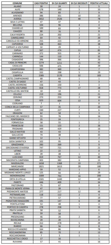 19/1. Agg. Covid Prov. Ce. 164 guariti ma 9 deceduti. Maddaloni e Mondragone ancora con oltre 200 positivi