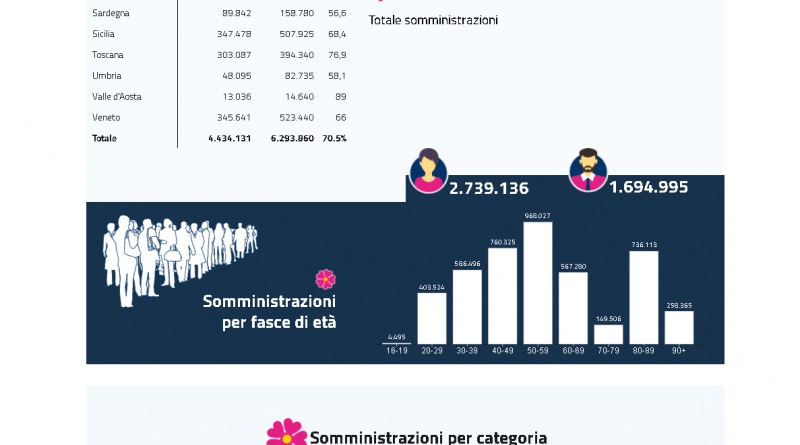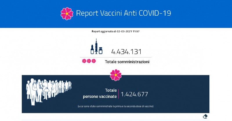Questo il report del Ministero della Salute in merito ai dati delle vaccinazioni anti-covid al 2 marzo. Si può vedere il totale delle somministrazioni, a quante persone è stata già somministrata la seconda dose, il numero di dosi consegnate e somministrate in ogni regione d'Italia. Presente anche il dato ufficiale dell'Asl di Caserta sulle dosi somministrate in provincia.