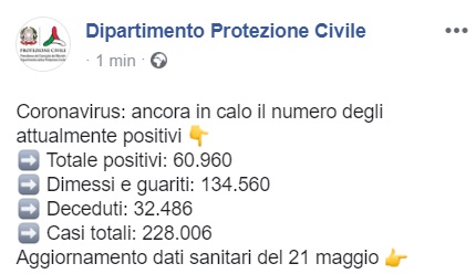 Questo quanto comunicato dalla Prot. Civile