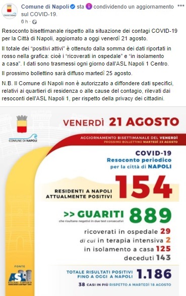 Questo quanto pubblicato sulla pagina facebook del Comune d Napoli: