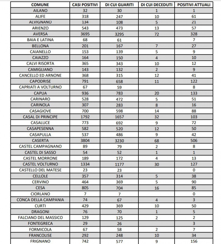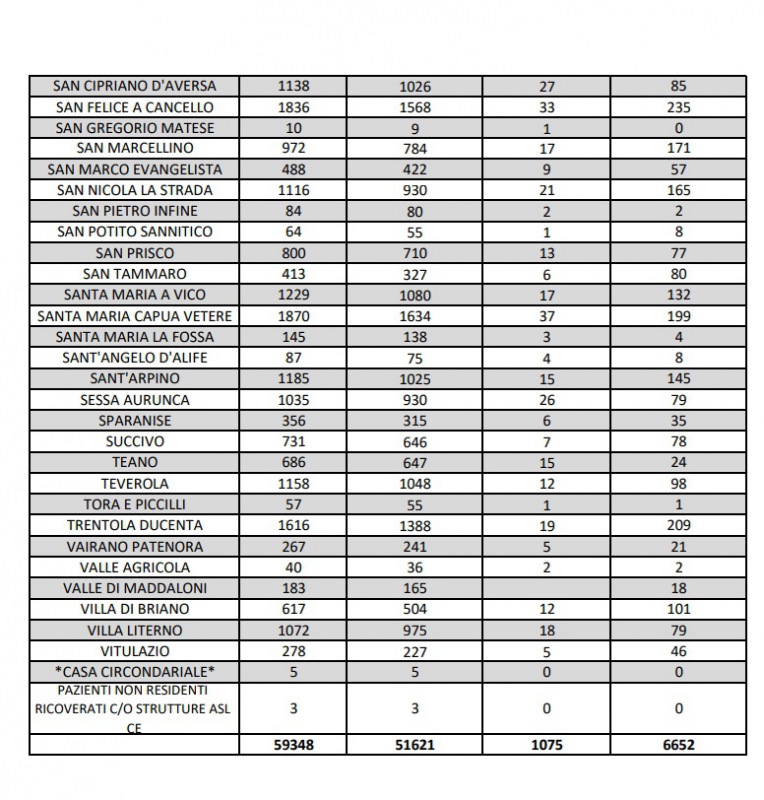 Questa la nota dell'ASL Caserta: