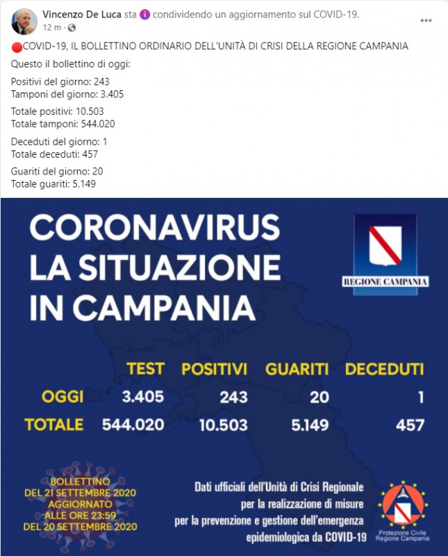 Questo quanto pubblicato dalla Regione Campania