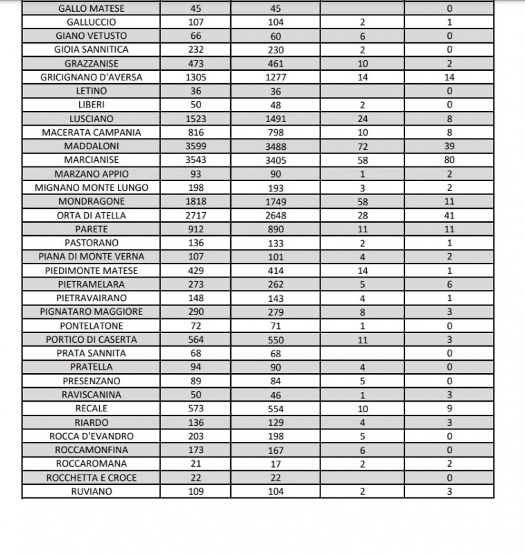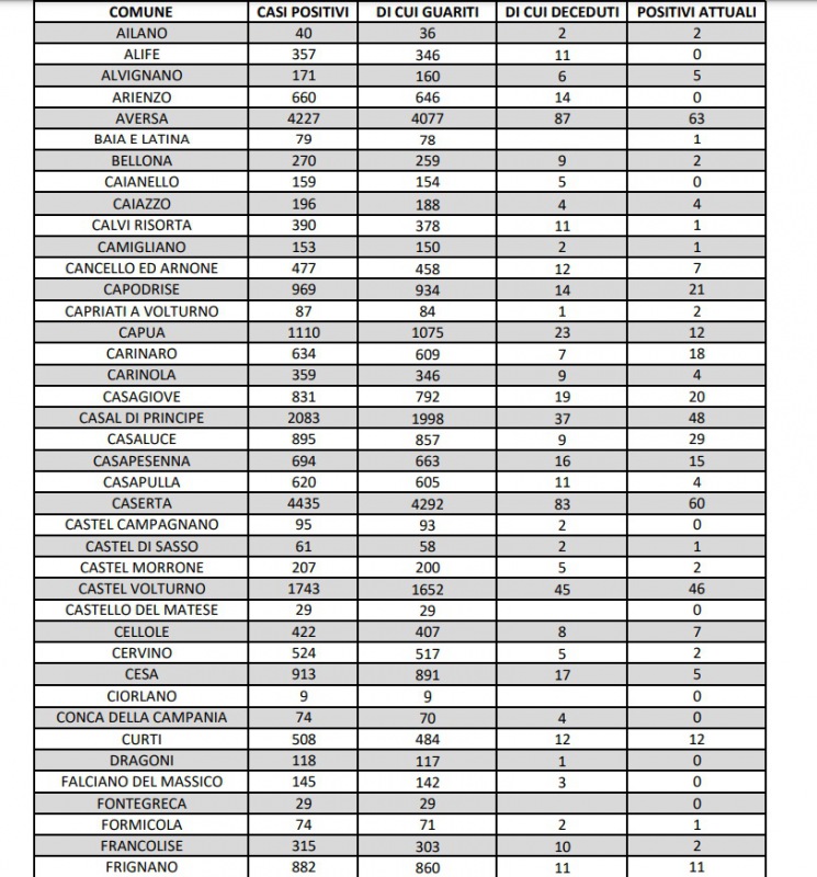 22/9. Registrati 3 decessi e 53 nuovi casi Covid in Prov. di Ce. Dati Comune per Comune