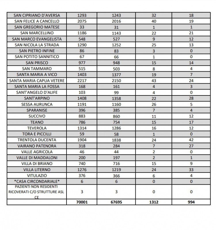 Questa la nota dell'ASL Caserta: