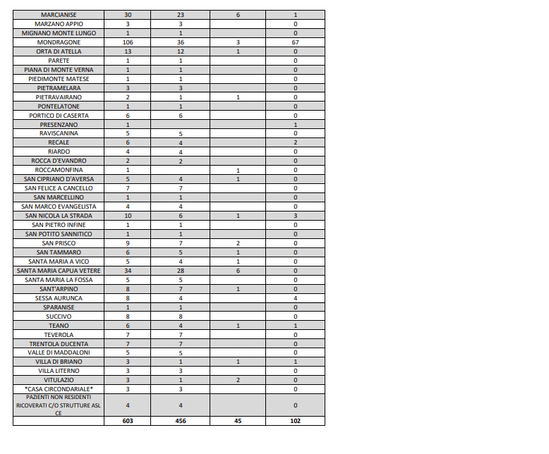 Questi i dati dell'ASL di Caserta: