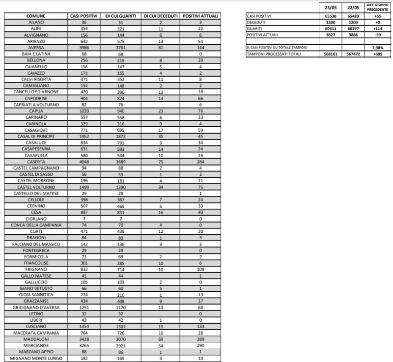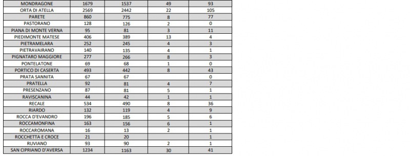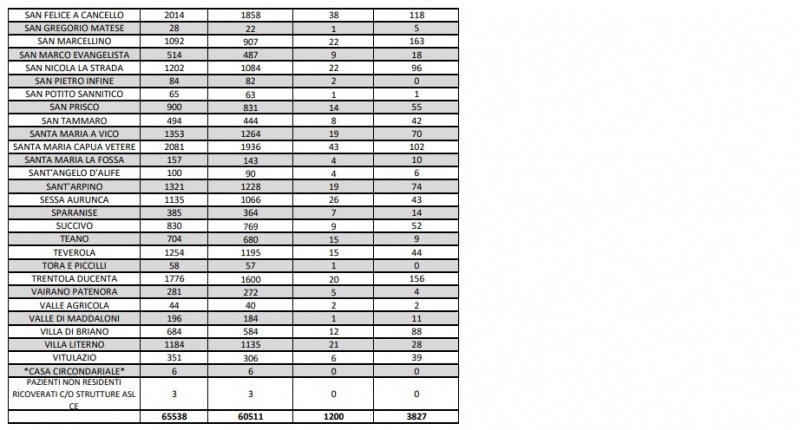 Questi i dati dell'Asl di Caserta: