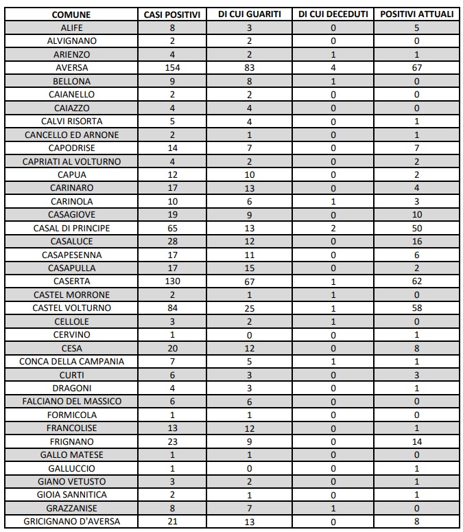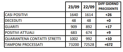24/9. Bollettino COVID-19 Prov. CE. 26 NUOVI POSITIVI. Dati ASL Comune per Comune