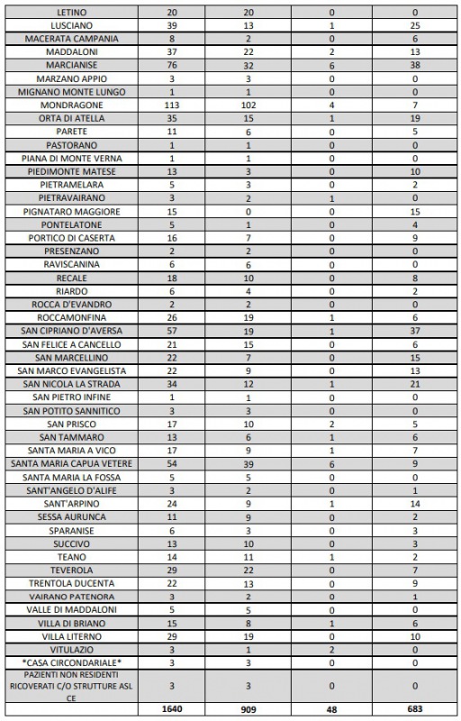 Questo quanto pubblicato dall'ASL Caserta