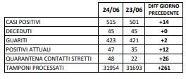 25/06. Coronavirus Prov. CE. 14 nuovi casi. Positivi a Lusciano e nell'Alto Casertano. Dati Comune per Comune