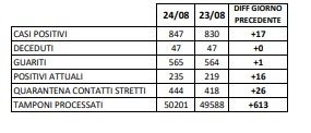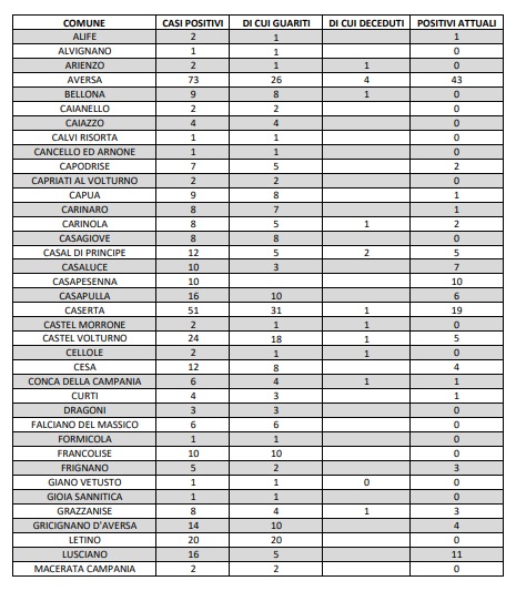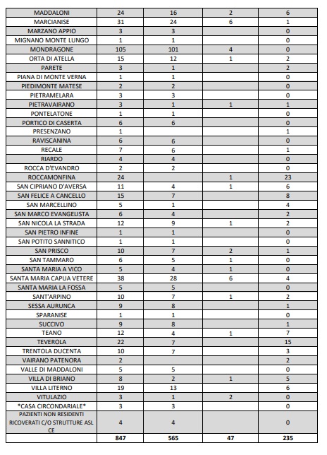Questi i dati dell'ASL di Caserta: