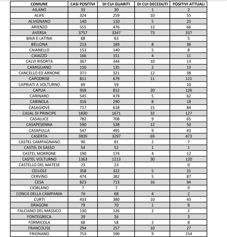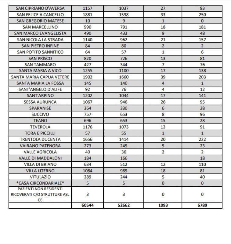 Questa la nota dell'ASL Caserta: