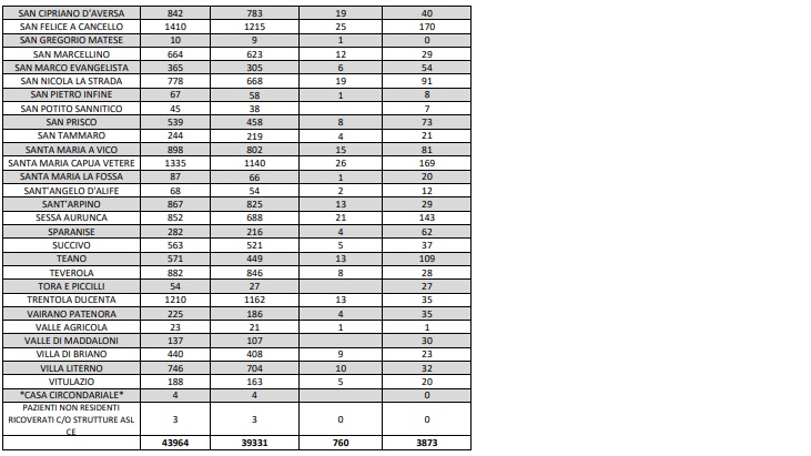 Questi i dati dell'Asl di Caserta