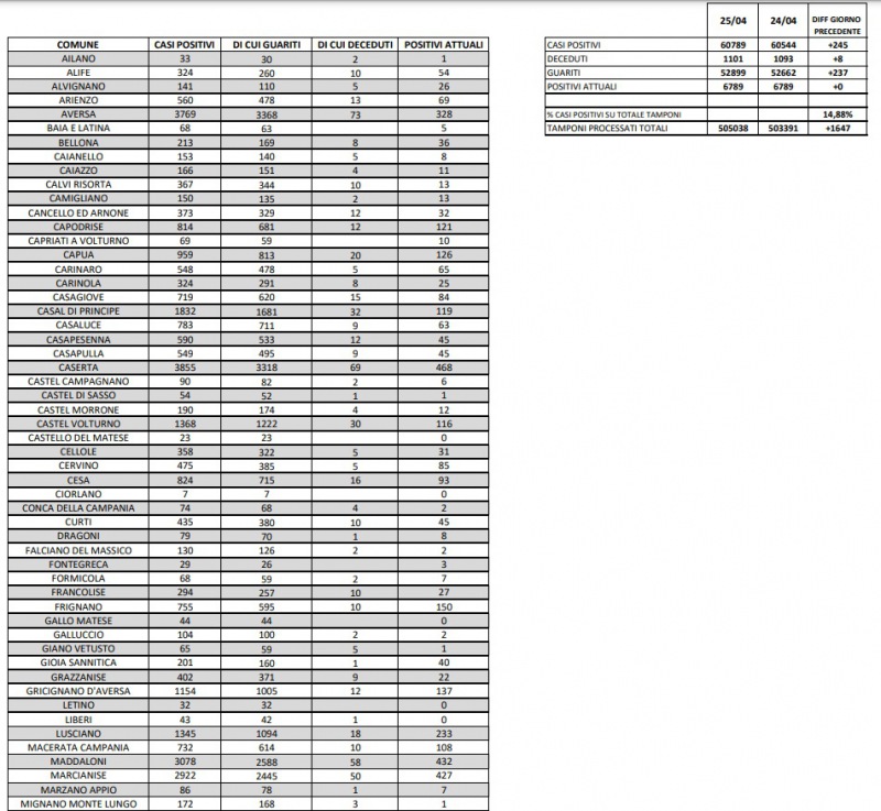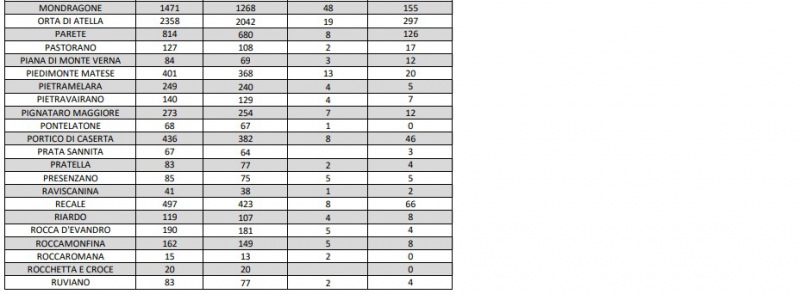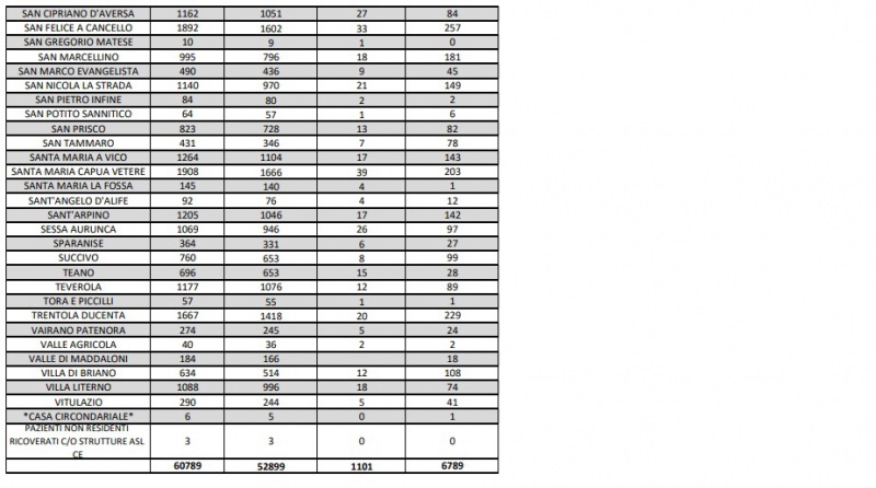 Quesi i dati dell'Asl di Caserta: