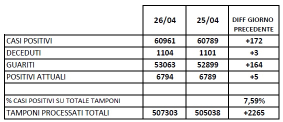 Potrebbe interessarti anche: 27/4. Covid Campania. 1.654 positivi su 18.035 tamponi molecolari del giorno