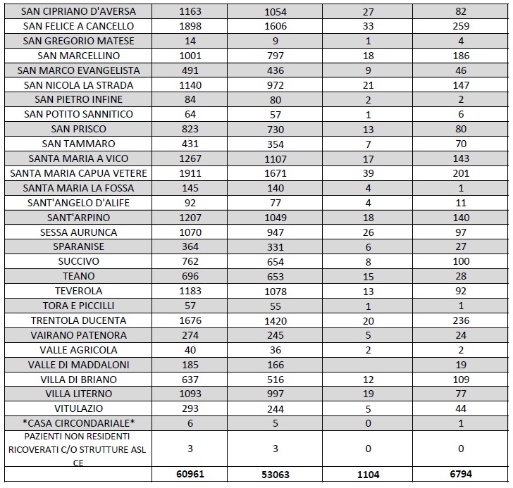 Questo quanto apprendiamo dall'ASL Caserta