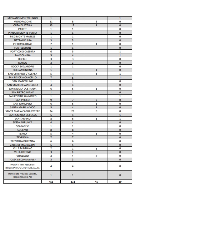 Questa la nota dell'Asl Caserta: