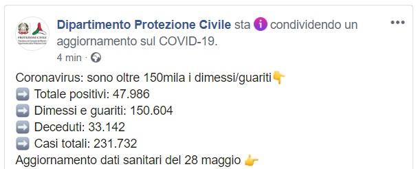 Questo quanto pubblicato dalla Prot. Civile
