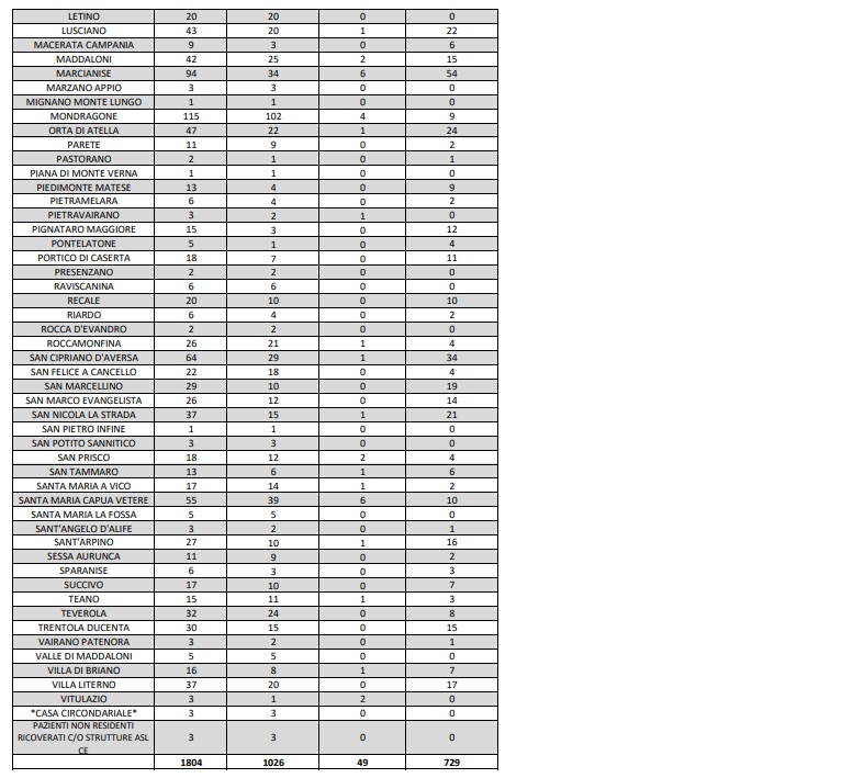 Questi i dati dell'ASL di Caserta
