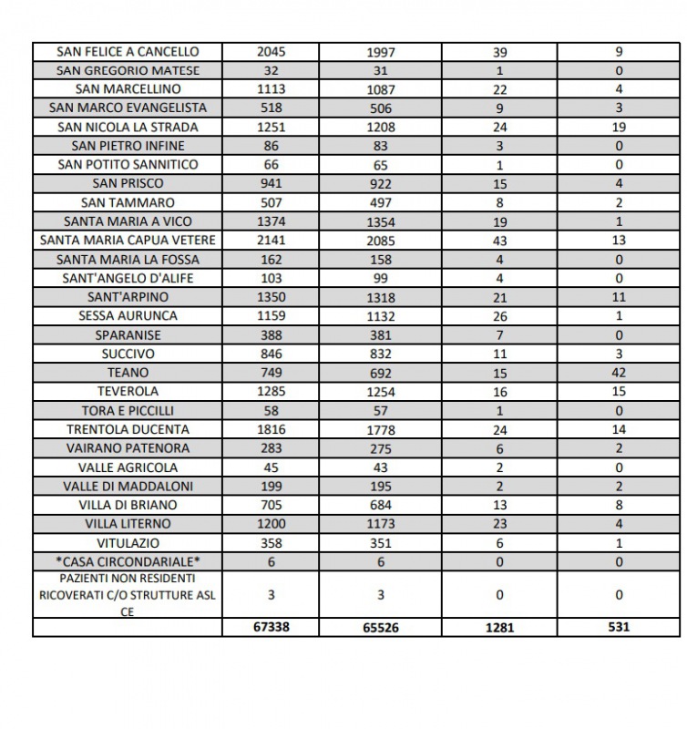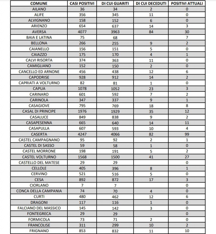 Questa la nota dell'ASL Caserta: